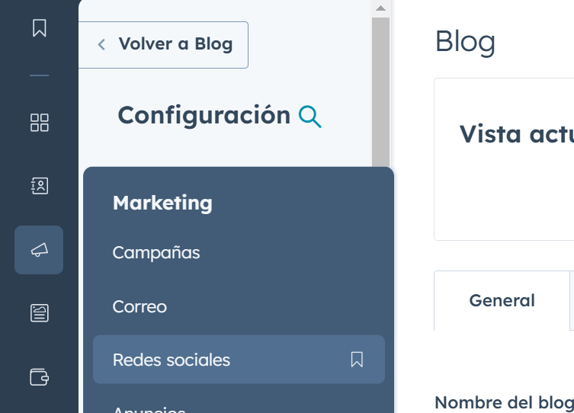 -Ve al menú principal y selecciona Marketing > Redes sociales.