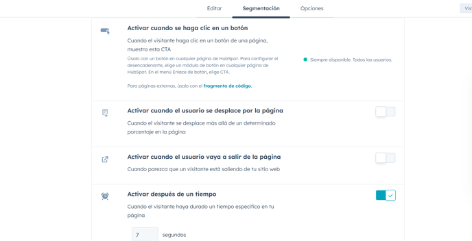 Si el CTA forma parte de una campaña de HubSpot, vincúlalo para rastrear resultados. - Personaliza según la audiencia (opcional):